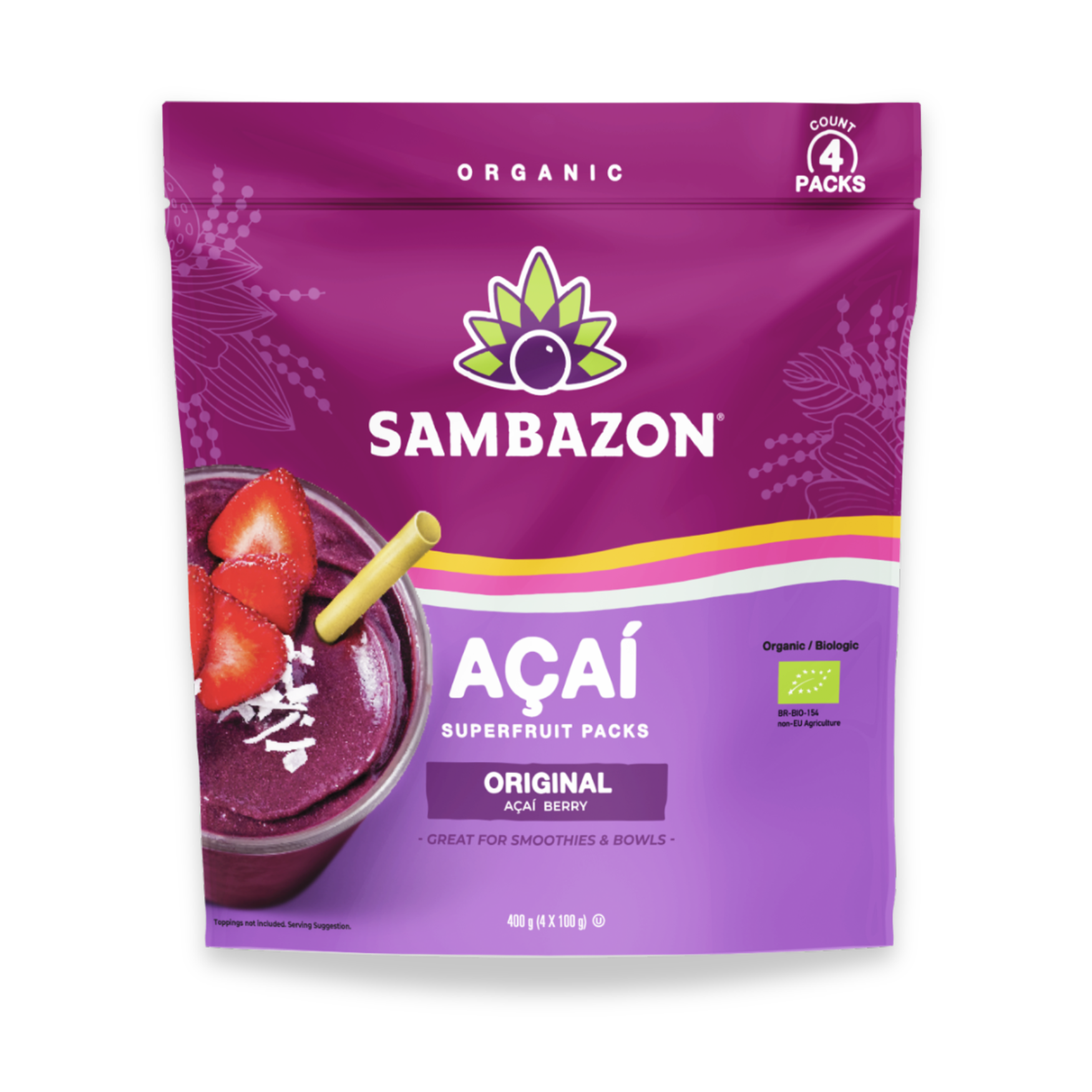 Epická chuť, antioxidanty a optimálny pomer mastných kyselín. Açaí značky Sambazon je pestované v ekologickom poľnohospodárstve, neobsahu geneticky modifikované organizmy (GMO-free). Je to najlepšia voľba na chutné smoothies pre zdravú výživu.